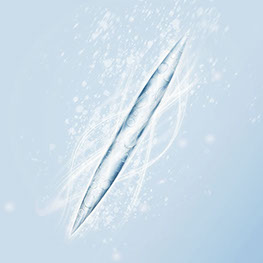 余計な溶剤や有機物を使用せず純粋成分のみで、ゆっくりと時間をかけて不純物を取り除く「純水浸透洗浄」で精製されたシリカ(ケイ素 / 無機物)の微細針は、長さ0.2mm、直径0.02mmと、目には見えない程に微細で均等な状態を保ちます。