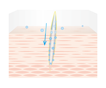 「インターミュースピア」が表皮から入り、肌の中で適度な刺激を与えます。